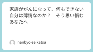 - 家族ががんになって、何もできない自分は薄情なのか? そう思い悩むあなたへ[こころ・ケアラー] →家族ががんになって、何もできない自分は薄情なのか?